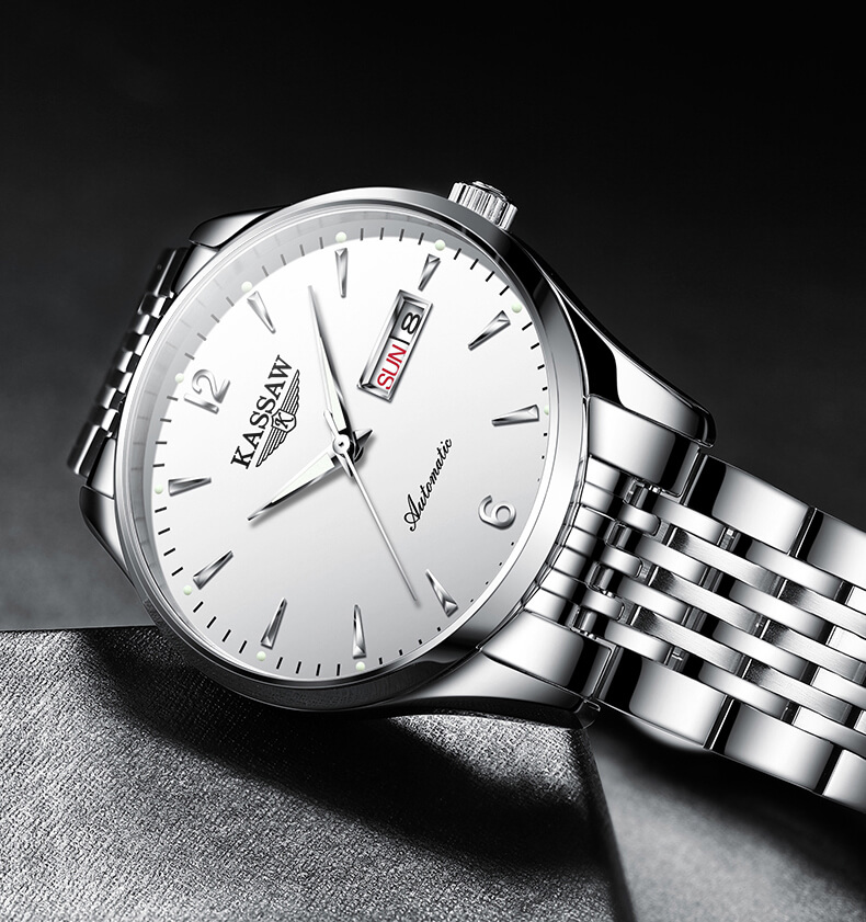 Mua tại TiktokĐồng hồ nam chính hãng Kassaw Thụy Sỹ Thiết kế sang trọng, đẳng cấp cho quý ông Thời gian trữ cót lâu lên đến 40h Chống nước 5ATM, Kính sapphire Toàn bộ máy được làm từ thép không gỉ 316L Đồng hồ cơ Automatic, Sử dụng bộ máy Miyota 8215 Chính hãng