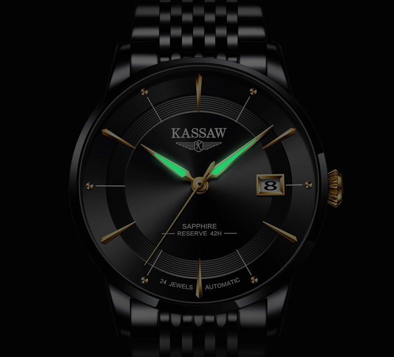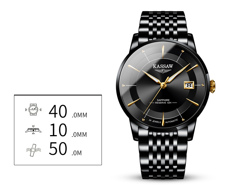 Đồng hồ nam chính hãng Kassaw Thụy Sỹ Thiết kế sang trọng, đẳng cấp cho quý ông Thời gian trữ cót lâu lên đến 40h Chống nước 5ATM, Kính sapphire Toàn bộ máy được làm