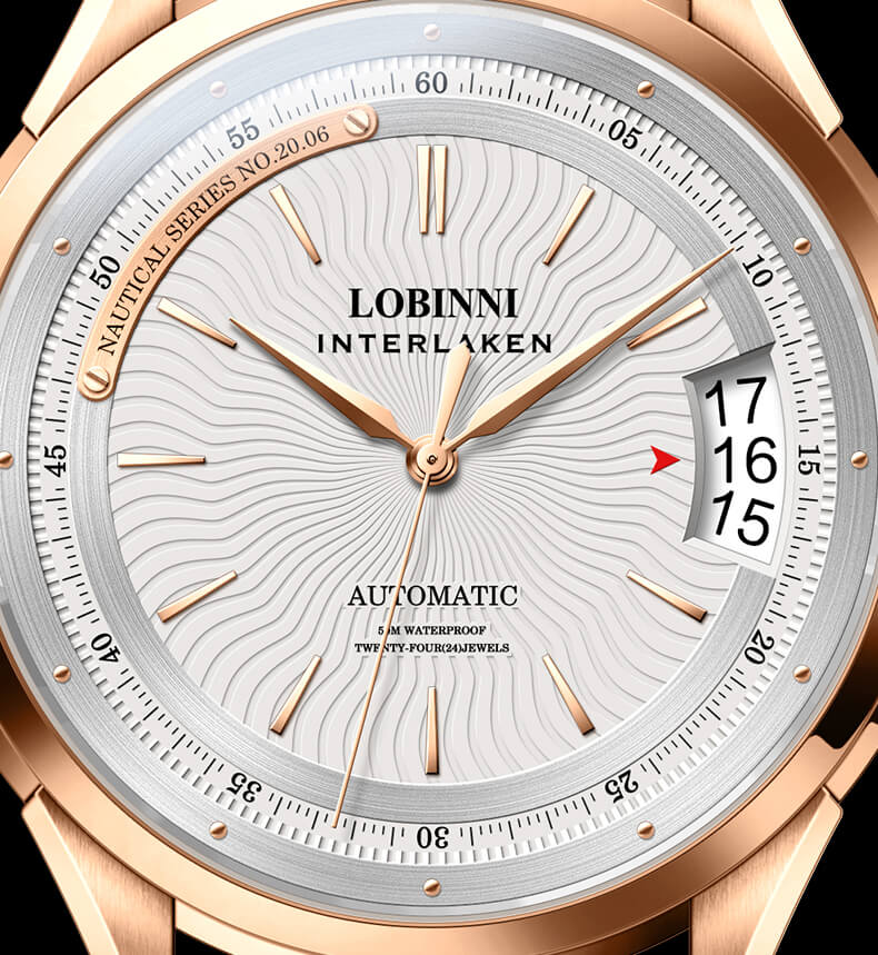 Mua tại TiktokĐồng hồ nam chính hãng LOBINNI Thụy Sỹ Thiết kế sang trọng, đẳng cấp cho quý ông Thời gian trữ cót lâu lên đến 40h Chống nước 5ATM, Kính sapphire Toàn bộ máy được làm từ thép không gỉ 316L Đồng hồ cơ Automatic, Sử dụng bộ máy In - House Chính hãng