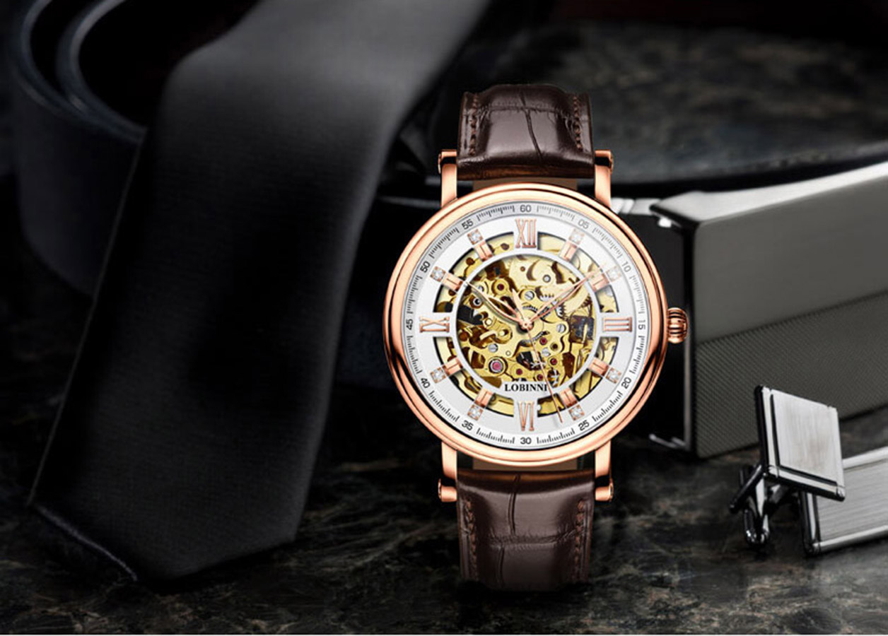 ❏ Vàng hồng 18K: Là vàng nguyên khối, phủ trọn gần như là toàn bộ mặt số đồng hồ LOBINNI L9010-2. Trong khi đó, sự sang trọng lại được kết hợp với nền tảng Skeleton độc đáo, giúp các quý ông chìm đắm ở cả mặt trước lẫn mặt sau thiết kế.