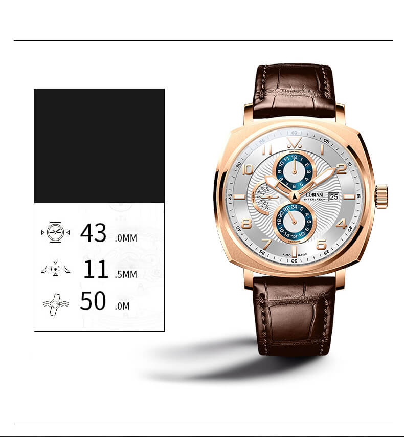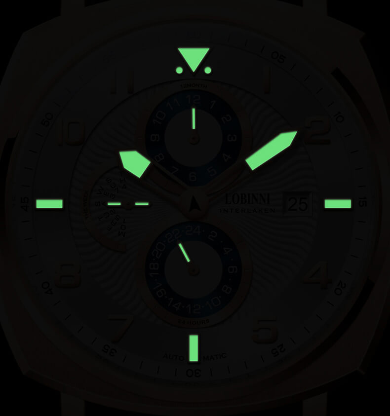 Nhãn hiệu LOBINNI Mã sản phẩm No.9010-1 Giới tính Nam Kiểu máy Automatic (Máy Cơ) Đường kính mặt 42 mm Độ dày 11 mm Chất liệu vỏ Thép không gỉ 316L Chất liệu dây Dây da cao cấp Chất liệu mặt kính Sapphire Khả