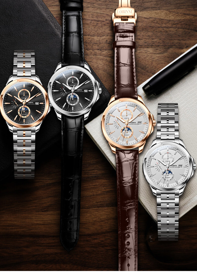 Đồng hồ nam chính hãng LOBINNI Thụy Sỹ Thiết kế sang trọng, đẳng cấp cho quý ông Thời gian trữ cót lâu lên đến 40h Chống nước 5ATM, Kính sapphire Toàn bộ máy được làm