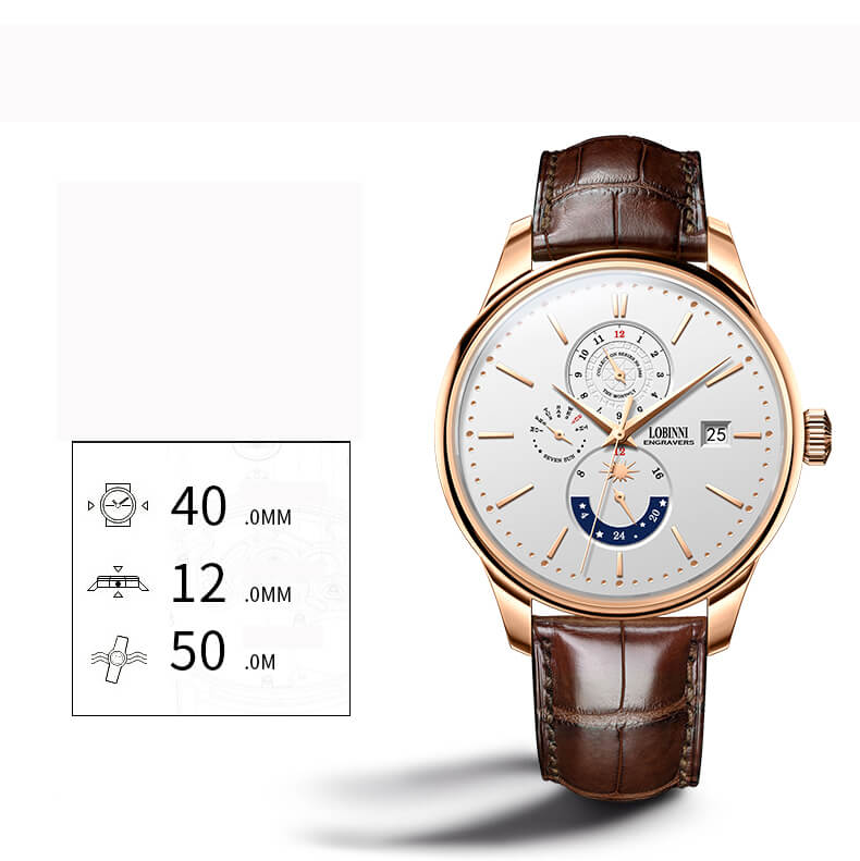 Đồng hồ nam chính hãng LOBINNI Thụy Sỹ Thiết kế sang trọng, đẳng cấp cho quý ông Thời gian trữ cót lâu lên đến 40h Chống nước 5ATM, Kính sapphire Toàn bộ máy được làm
