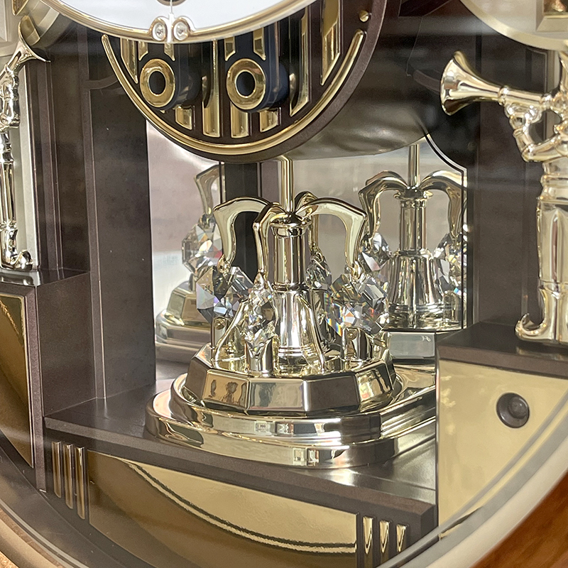 Mua tại TiktokĐồng hồ treo tường Rhythm Magic Motion 4MH414WR06, dùng 2 pin (D ). Vỏ gỗ màu nâu, Kích thước 42.2 x 53.8 x 11.6cm, trọng lượng 3.88kg. Âm thanh thính phòng SIP ( Sound In Place ) đạc sắc độc quyền của Rhythm Japan với 3 chọn lựa chế độ phát nhạc gồm : 12 bản nhạc cổ điển A / 12 bản nhạc B (12 + 12 Melodies) / 6 bản giáng sinh ( 6 X-mas Songs). Mắt Cảm ứng ánh sáng tự động ngưng phát nhạc khi thiếu sáng. Nút chỉnh âm lượng tiện lợi. Cụm Quả lắc cẩn đá pha lê. Lắp ráp tại Trung Quốc.