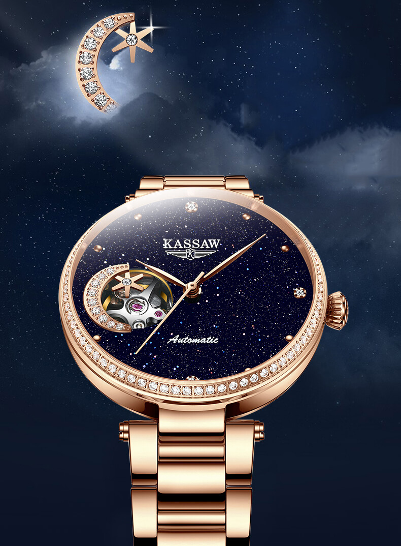 Đồng hồ nữ chính hãng Kassaw Thụy Sỹ Thiết kế hiện đại,sang trọng dành cho phái nữ Thời gian trữ cót lâu lên đến 40h Chống nước 5ATM, Kính sapphire Toàn bộ máy được làm