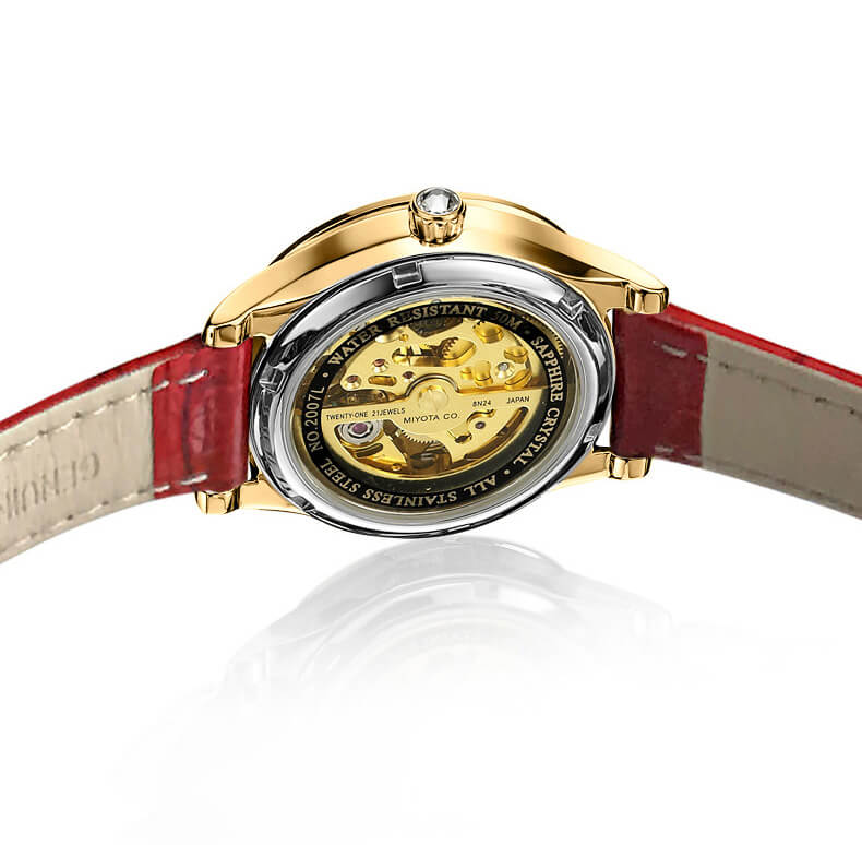 THÔNG SỐ SẢN PHẨM: Mã sản phẩm : K991-1 Giới tính : Nữ Kiểu máy : Automatic (Máy Cơ) Đường kính mặt : 35 mm Độ dày: 9 mm Chất liệu vỏ : Thép không