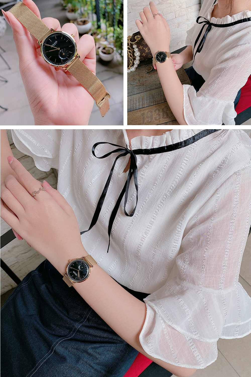 Đồng Hồ Nữ Julius Hàn Quốc Dây Thép JA 1297D Đen