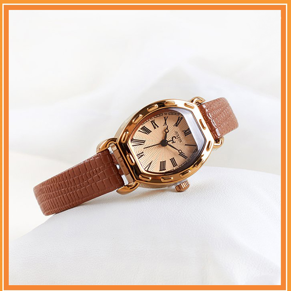Chiếc đồng hồ thích hợp với các bạn nữ yêu thích sự trẻ trung, quyến rũ và với thiết kế nhỏ nhắn nhẹ nhàng cho nữ giới dây da tối màu giúp bạn dễ phối