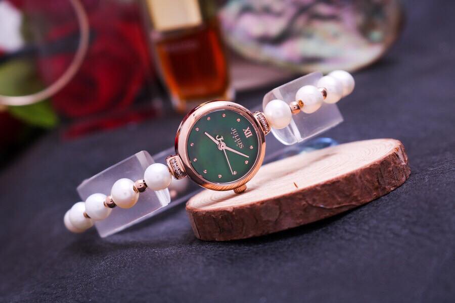 Đồng hồ nữ Julius JA-1346 Hàn Quốc dạng lắc tay đá ngọc trai nước ngọt dịu dàng nữ tính, sinh ra để dành tặng nàng thơ. Đồng hồ dây lắc tay đính đá khiến ai