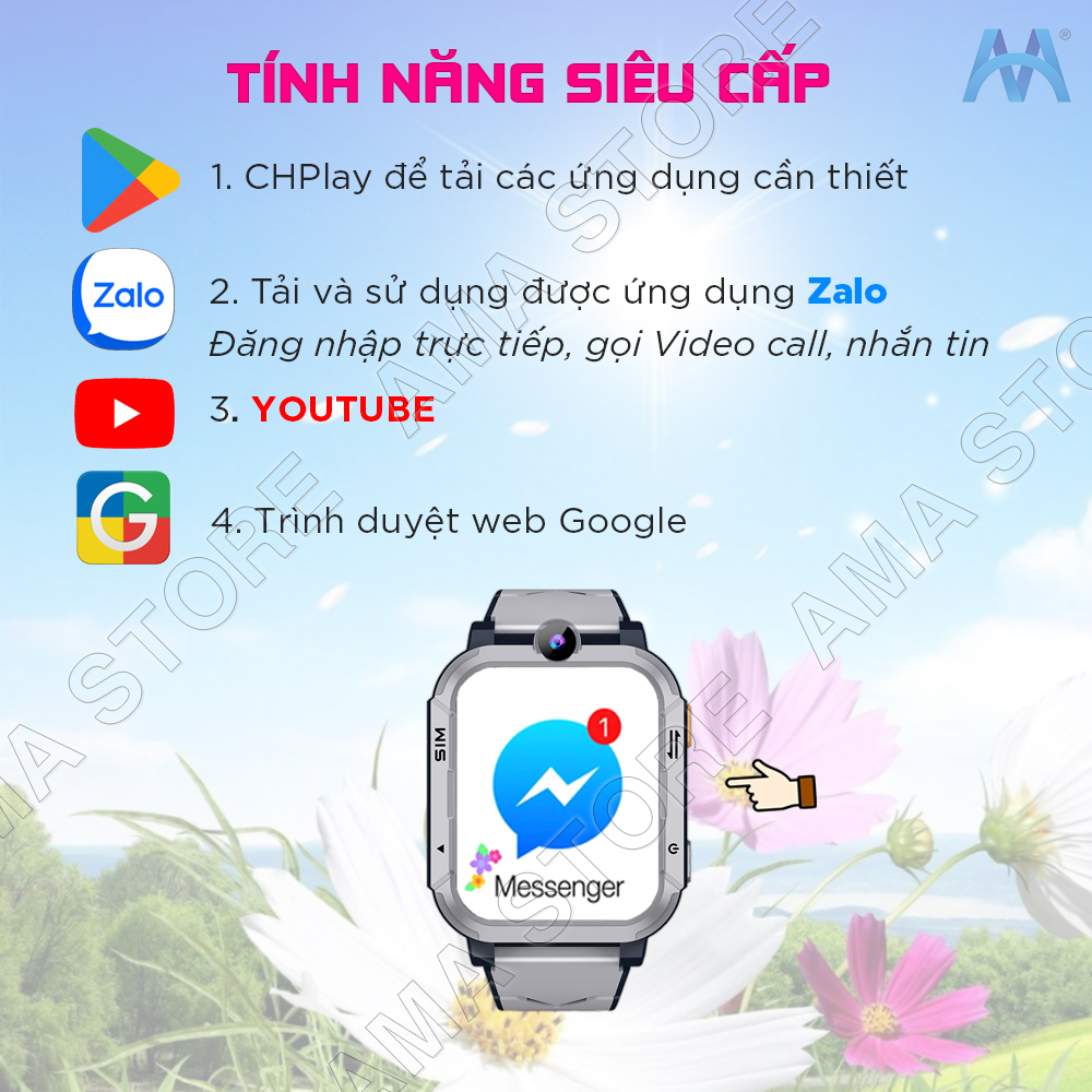 Đồng hồ Thông minh AMA Watch Y86 có CHPlay xem được Youtube có Zalo Gắn sim 4G Định vị Kép GPS Wifi cho Trẻ em cấp 1 2