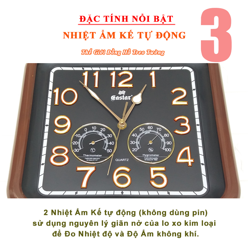 1. ĐẶC ĐIỂM NỔI BẬT: - Đồng Hồ Treo Tường Cao Cấp EASTAR Kim điện tử, Dạ quang, Đồng hồ Lịch Vạn Niên và Nhiệt kế hình Chữ nhật, Mặt kính Nổi, hiện đại, sang