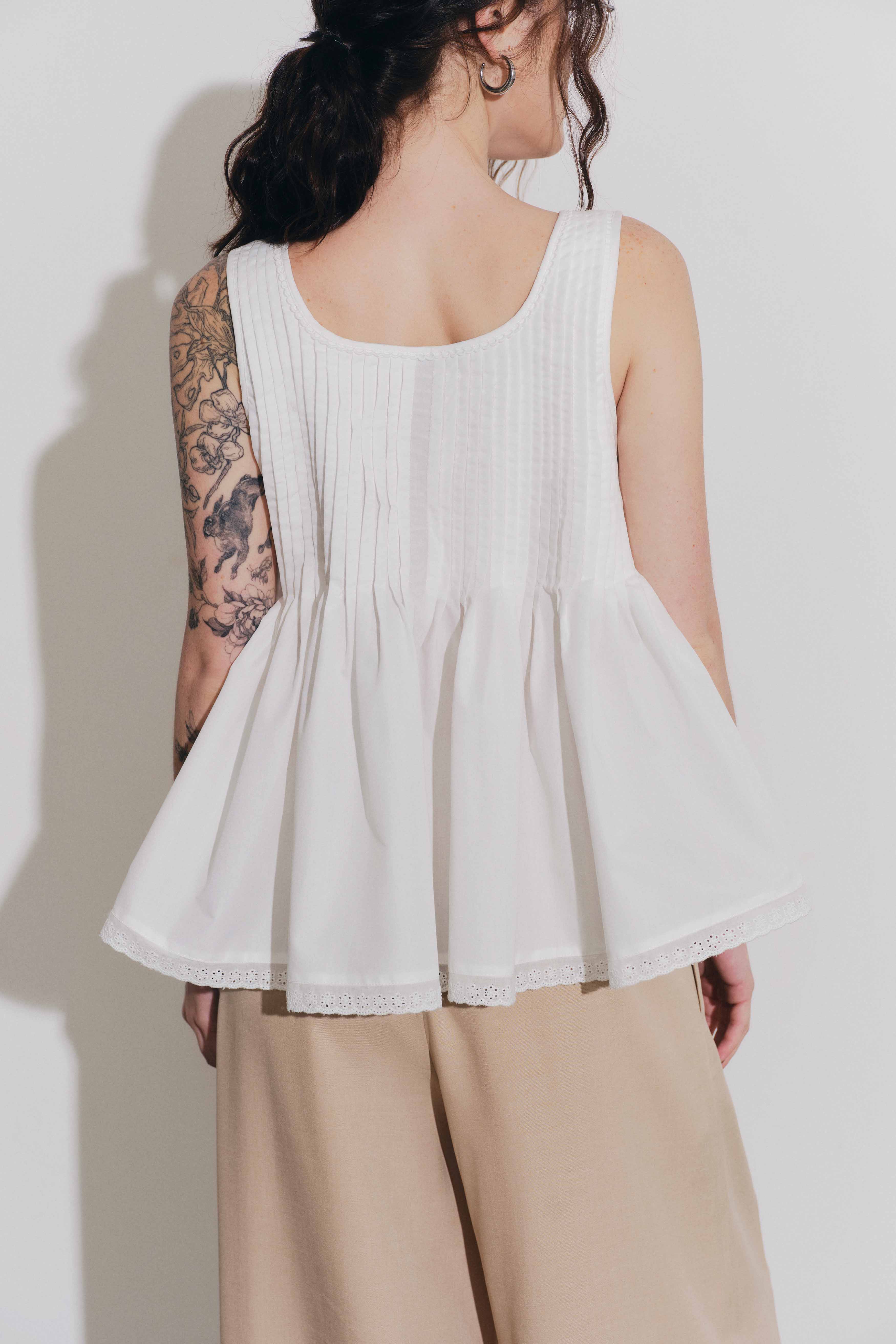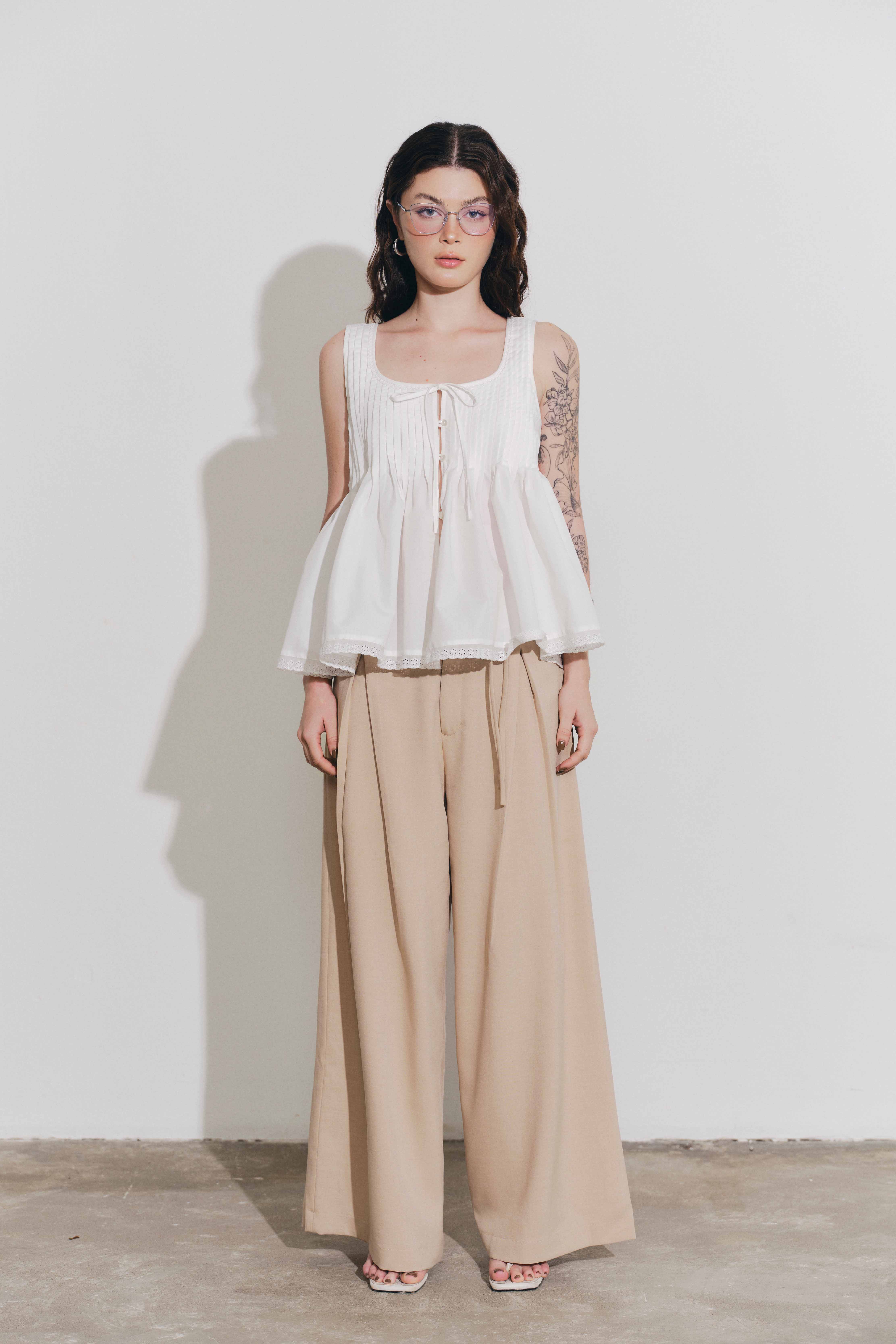✨DOTTIE - Áo kiểu chiết ly - Trắng - T1130