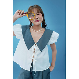 ✨DOTTIE - Áo kiểu tay phồng phối vải - Trắng kem - T1119
