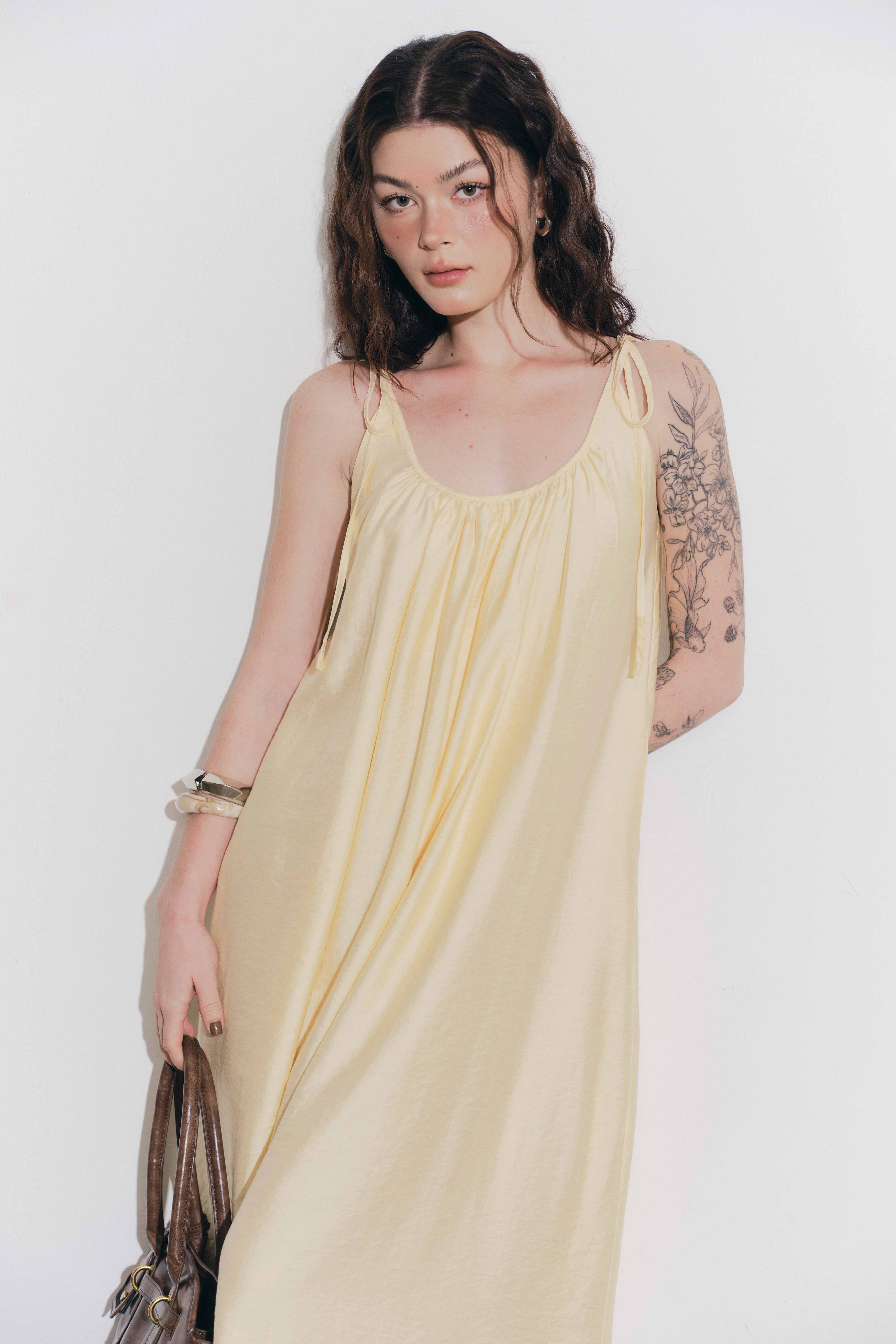 - Màu sắc : Vàng - Chất liệu : Kate xước - Đặc tính : Nhẹ , thoáng mát, ít nhăn - Lưu ý giặt ủi : Giặt riêng, giặt tay, giặt máy Ủi ở nhiệt độ thấp - Size : S / M - Thông số sản phẩm : Dài váy / Ngang ngực S: 113 / 92 M: 115 / 96 LƯU Ý: + Bảng size chart chỉ mang tính chất tham khảo, tùy thuộc vào số đo cơ thể Dottie sẵn sàng tư vấn cho bạn. + Nếu cần Dottie hỗ trợ về sản phẩm, khi mở sản phẩm bạn vui lòng quay lại video quá trình mở sản phẩm giúp Dottie nhen. + Giặt riêng với đồ tối màu + Khuyến khích giặt tay đối với những sản phẩm trắng + Hạn chế sấy ở nhiệt độ cao QUY ĐỊNH ĐỔI TRẢ • Thời gian: