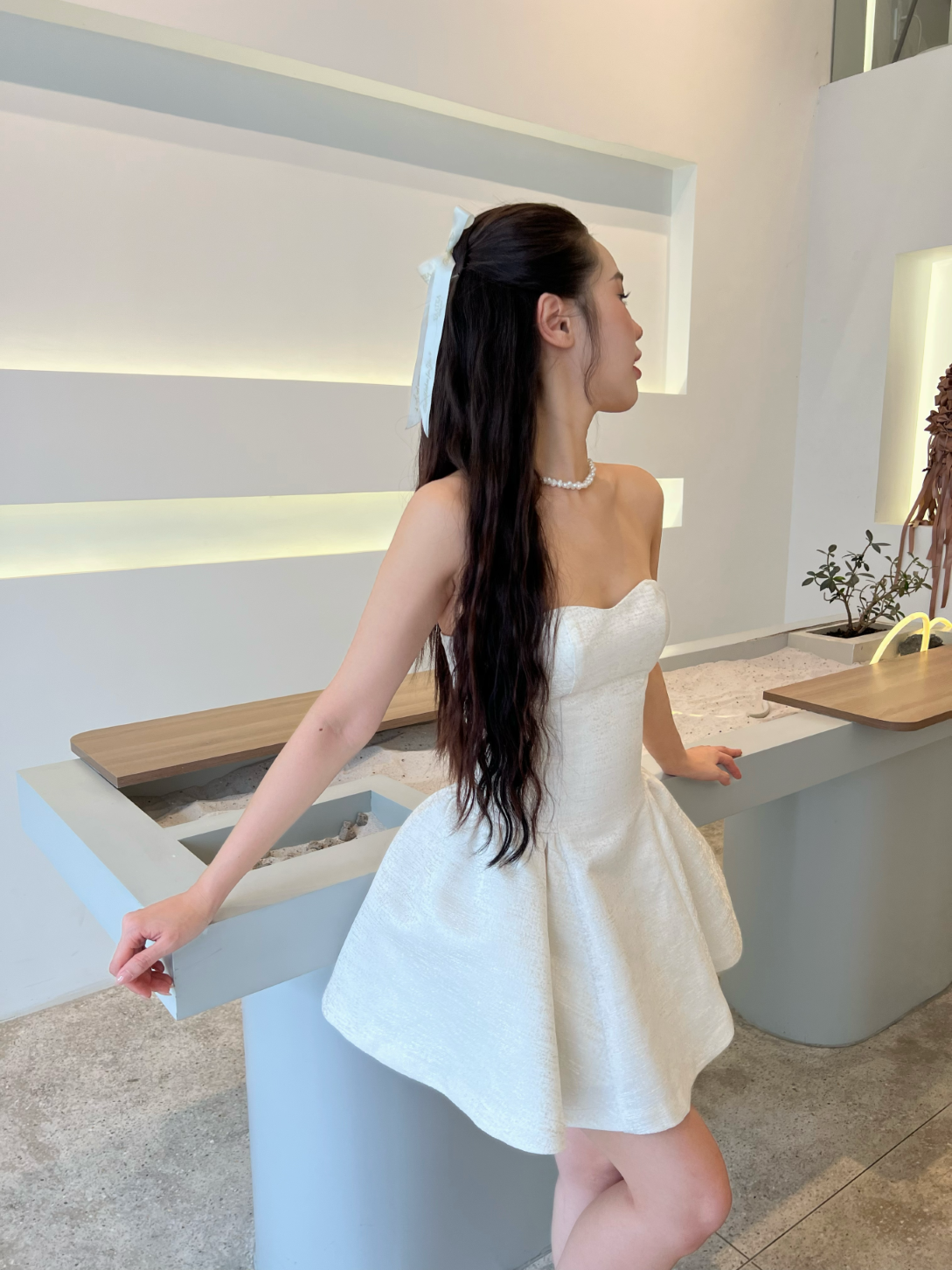 ღ THÔNG TIN SẢN PHẨM:   Tên sản phẩm: Đầm trắng cột nơ   Thông số size: S, M, L, XL   Chất liệu: Chất xốp kim cương   Chiều dài Đầm: Size S: 100