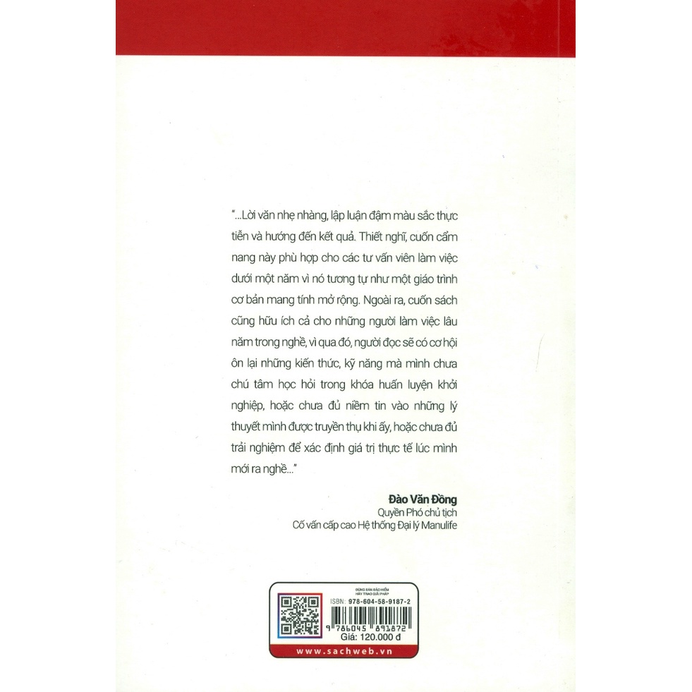 Tác giả: Pilot Nguyễn Khổ sách: 13x19 cm Số trang: 248 trang Năm xuất bản: 2019 NXB Tổng hợp Tphcm “Đừng bán bảo hiểm - Hãy trao giải pháp” là cuốn sách tâm huyết của