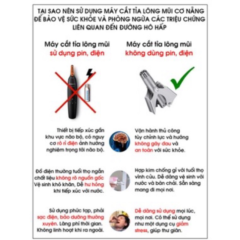 Máy Tỉa Lông Mũi Cao cấp - Có một số người đã dùng biện pháp nhổ lông mũi hoặc dùng kéo cắt. Tuy nhiên, điều này sẽ không an toàn. Bởi vì nhổ lông mũi