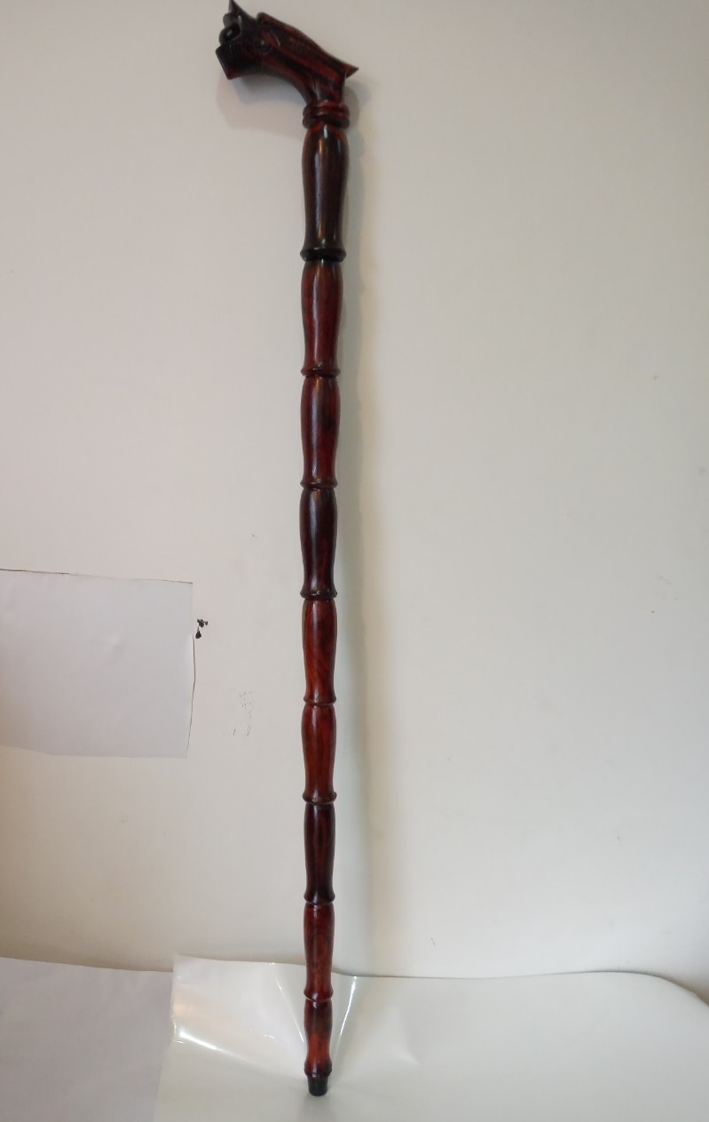 Gậy gỗ đầu rồng nguyên khối gỗ hương -kt 90 x 13 Kích thước cao 90cm ngang thân đầu rồng 13cm đk thân tròn 3,5cm Nguyên liệu: gậy gỗ hương Mầu sắc: nâu- đỏ Gỗ
