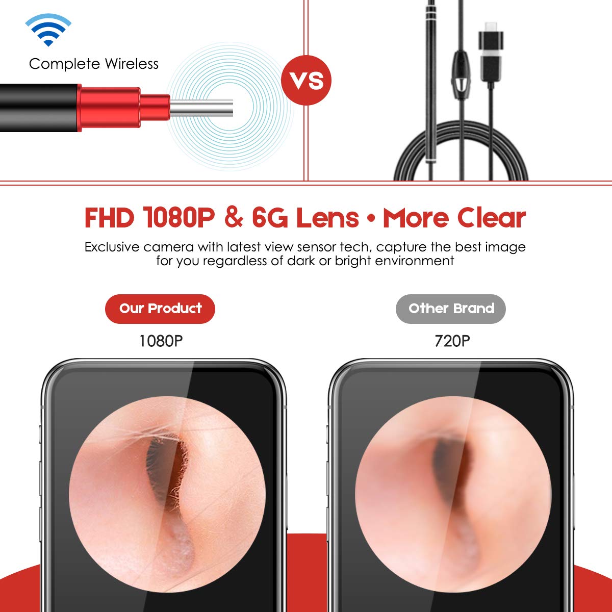 ✨Dụng Cụ Lấy Ráy Tai Thông Minh Cảm Biến Bebird Camera Nội Soi Không Dây WiFi 6 Đèn LED và HD 1080P 2Megapixels