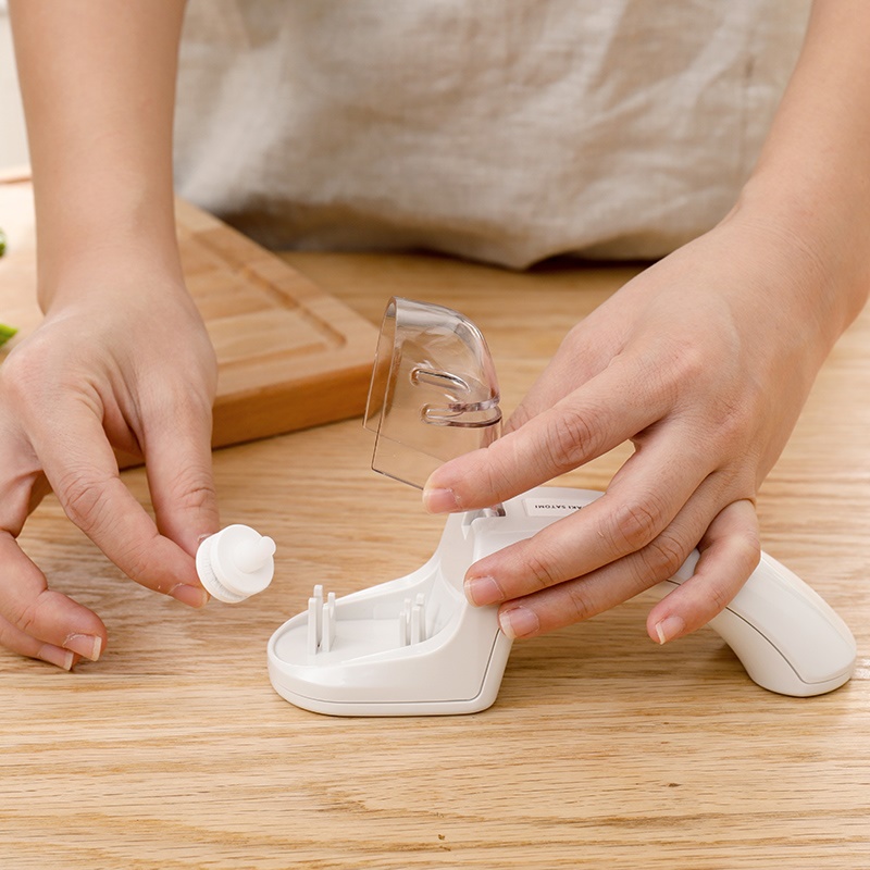 MÔ TẢ SẢN PHẨM: Chất liệu/ thành phần: Đá mài bằng Ceramic, tay cầm bằng nhựa ABS & nhựa polycarbonate an toàn tuyệt đối cho người sử dụng Màu sắc: màu trắng Kích thước: W170*D50*H52mm