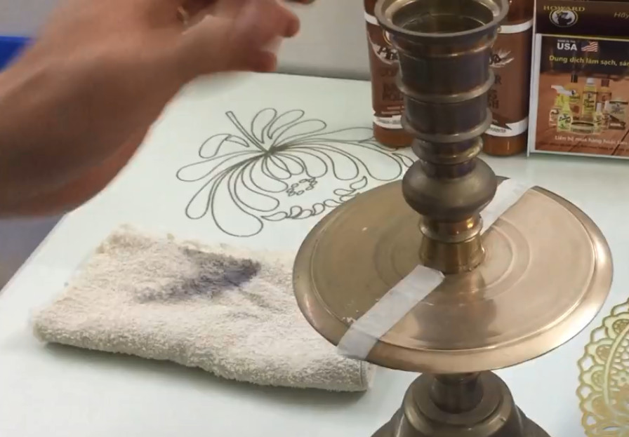 - Cho 1 lượng vừa đủ lên giẻ sạch mềm, lau đều lên bề mặt vật dụng cho đến khi sạch vết ố, vết bẩn.