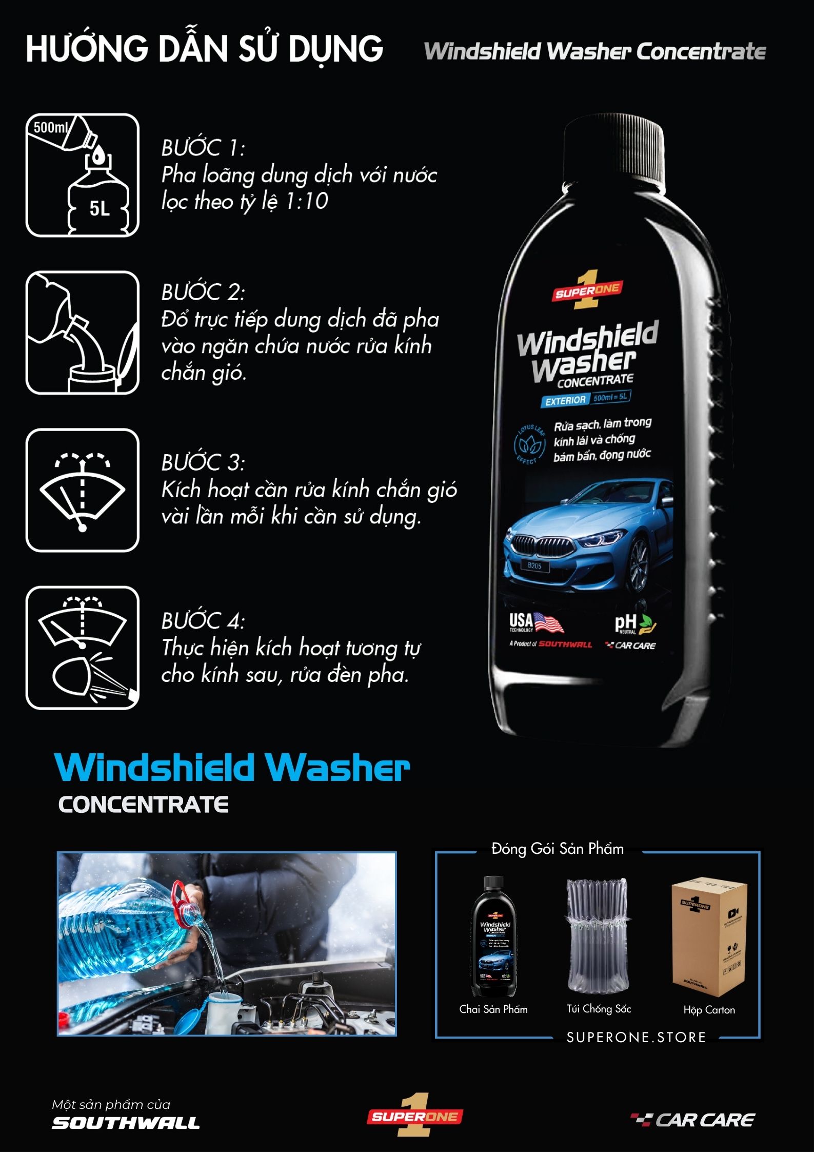 ✨Dung Dịch Rửa Kính Ô Tô SUPERONE Winshield Washer Concentrate - Exterior SOUTHWALL B205