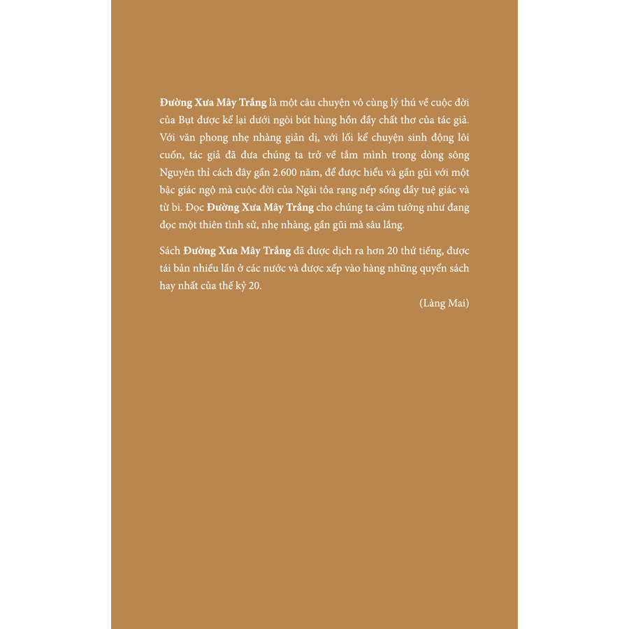Đường Xưa Mây Trắng - Theo Gót Chân Bụt (Bìa Cứng) Đường Xưa Mây Trắng là một câu chuyện vô cùng lý thú về cuộc đời của Bụt được kể lại dưới ngòi bút hùng