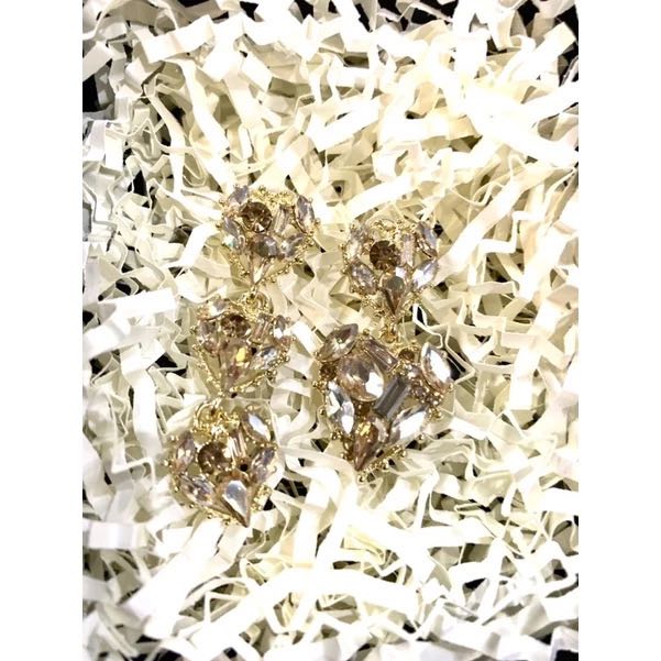 Bông tai nữ đính đá hình trái tim, thiết kế sang trọng với những viên đá sáng lấp lánh,