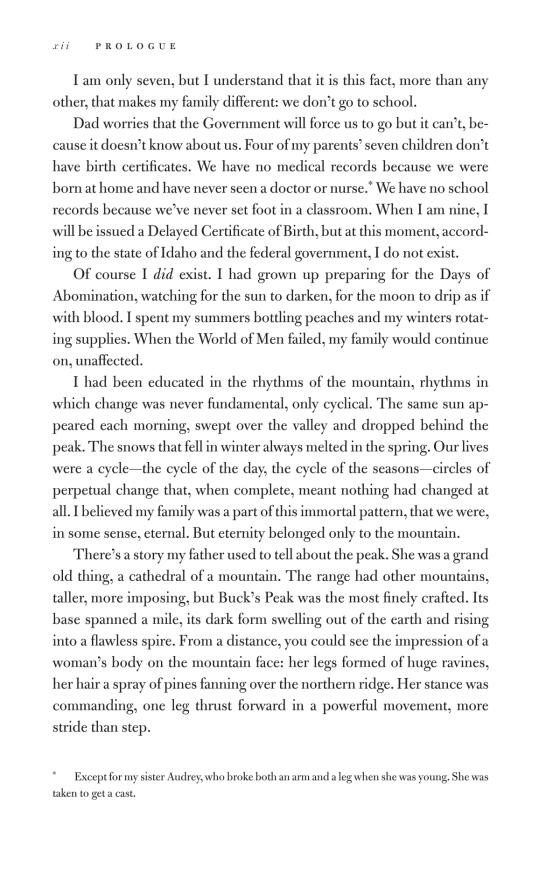 Born to survivalists in the mountains of Idaho, Tara Westover was seventeen the first time she set foot in a classroom. Her family was so isolated from mainstream society that there was no one to ensure the children received an education, and no one to intervene when one of Tara's older brothers became violent. When another brother got himself into college, Tara decided to try a new kind of life. Her quest for knowledge transformed her, taking her over oceans and across continents, to Harvard and to Cambridge University. Only then would she wonder if she'd traveled too far, if there was still a way home.