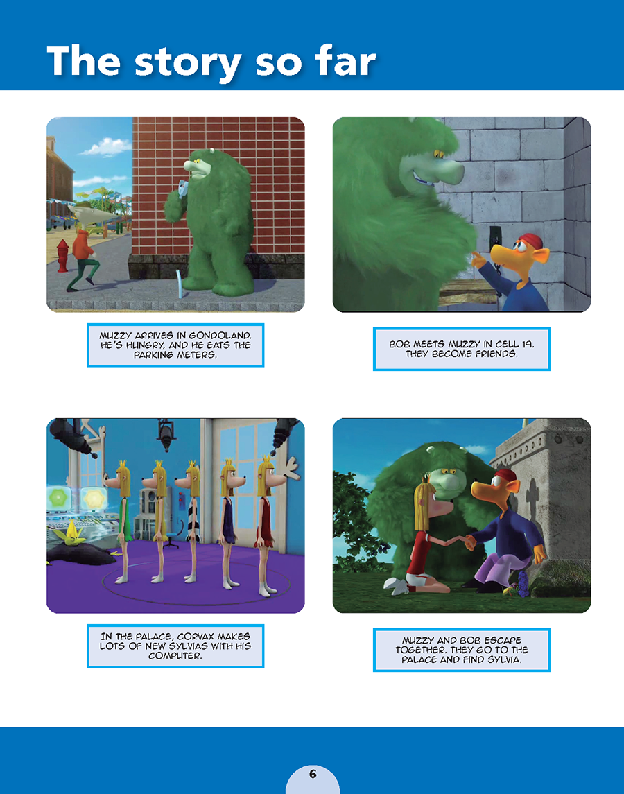Những cuốn sách giáo khoa này sử dụng các video và cốt truyện gốc của Muzzy làm nền tảng để xây dựng các kỹ năng ngôn ngữ cơ bản và phát triển từ vựng, ngữ pháp, phát âm và sự trôi chảy ở trẻ học tiếng Anh như một ngoại ngữ.