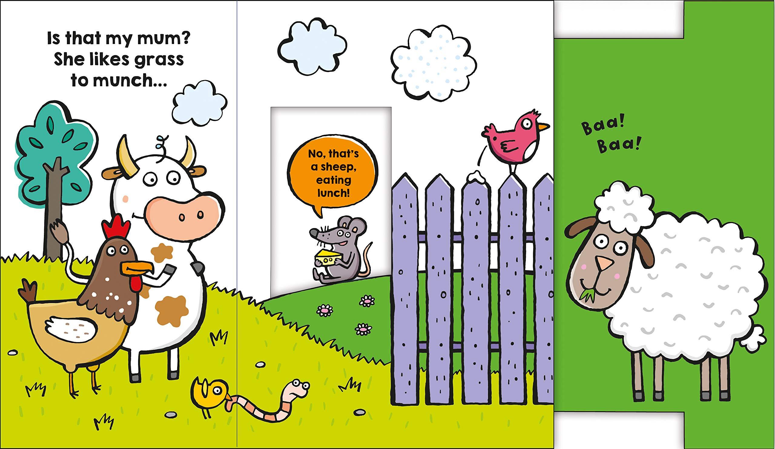 Toddlers will love Roger Priddy's Funny Friends: Farmyard Bottoms a seek and find romp around the farm with four fun pull-tabs! Join Cow as he searches around the barnyard for his mum, muddling up different animals along the way. The fun rhyming text encourages young children to ask questions and participate in the story as they try to work out which animal is which.