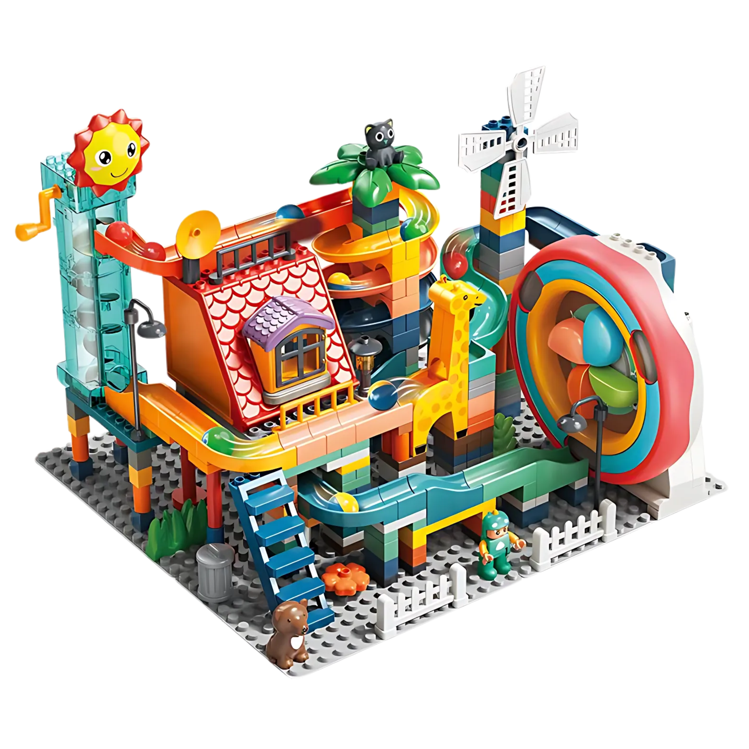 Mua tại TiktokNgôi nhà rừng trượt vui nhộn lắp ráp – FEELO (330 PCS) – Bộ đồ chơi lắp ráp mô phỏng khu nhà trò chơi rừng nhiệt đới với máng trượt xoắn ốc, cầu thang, cối xay gió, thang dây và nhiều chi tiết hấp dẫn – Gồm 330 chi tiết nhỏ, phù hợp với bé thích các công trình phức hợp và có nhiều hoạt động tương tác – Giúp bé rèn luyện tư duy kỹ thuật, khả năng phối hợp tay mắt và trí tưởng tượng thông qua hoạt động lắp ráp và sáng tạo