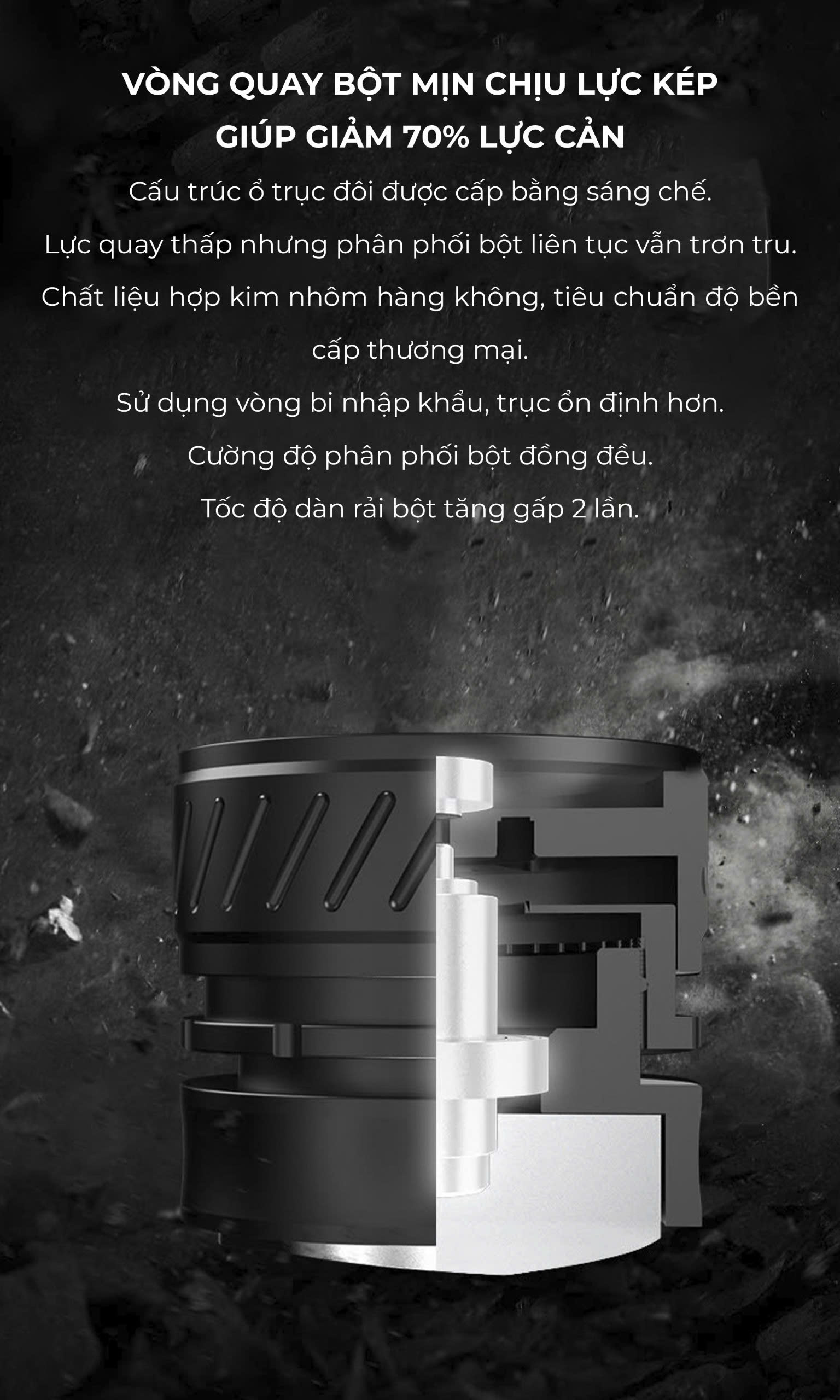 Cấu trúc ổ trục đôi được cấp bằng sáng chế – San phẳng đều, mượt mà.