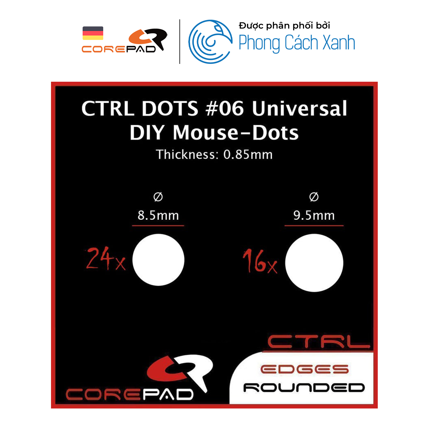 Feet chuột PTFE Corepad CTRL DOTS #06 Universal DIY Mouse-Dots [Ø 8.5 / 9.5mm] - Hàng Chính HãngFeet chuột PTFE Corepad CTRL DOTS #06 Universal DIY Mouse-Dots [Ø 8.5 / 9.5mm] - Hàng Chính Hãng