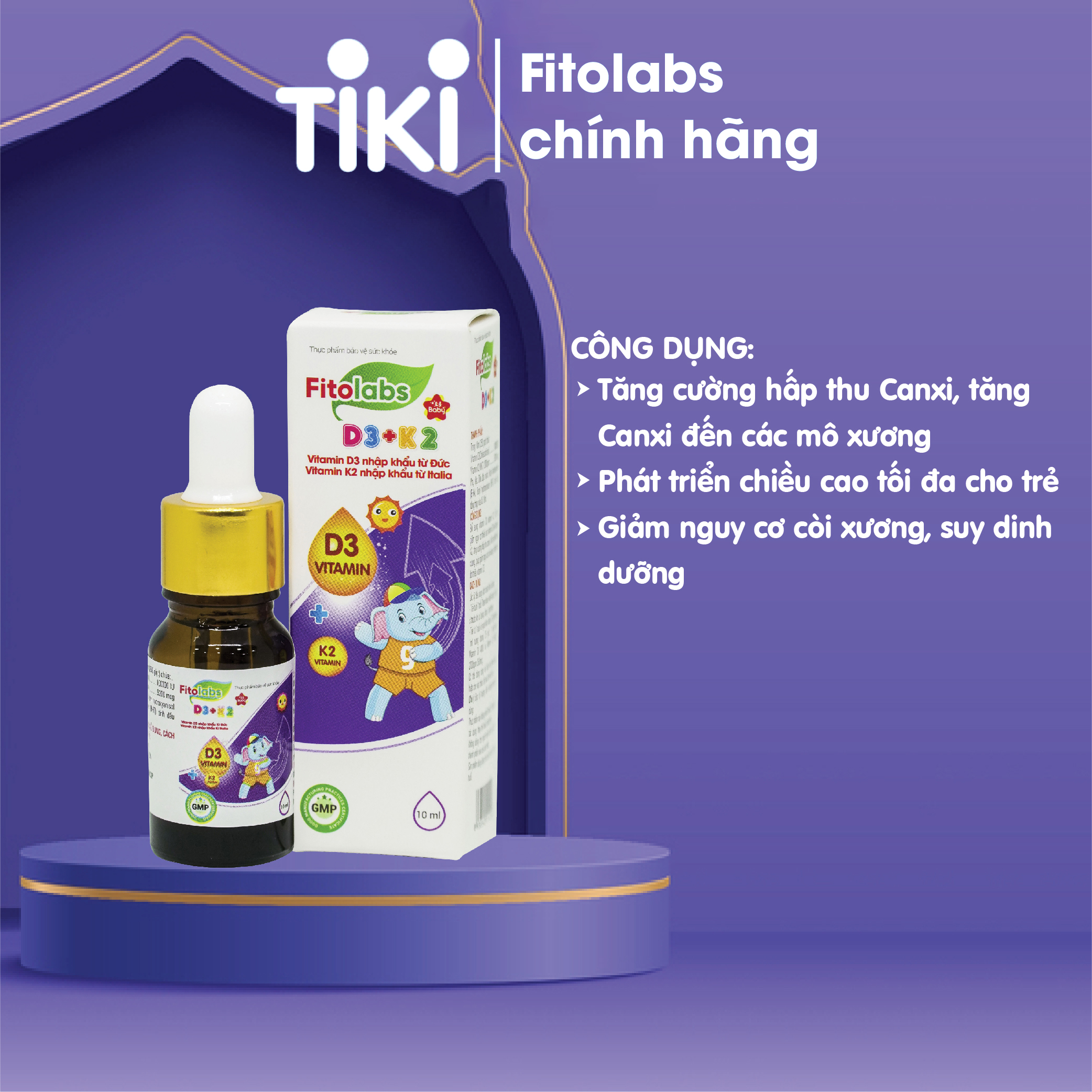 Fitolabs D3 - K2 dạng nhỏ giọt, bổ sung vitamin D3 K2 giúp bé tăng chiều cao, xương răng chắc khỏe. Fitolabs D3 - K2 bổ sung bộ đôi vitamin D3 và vitamin K2 giúp