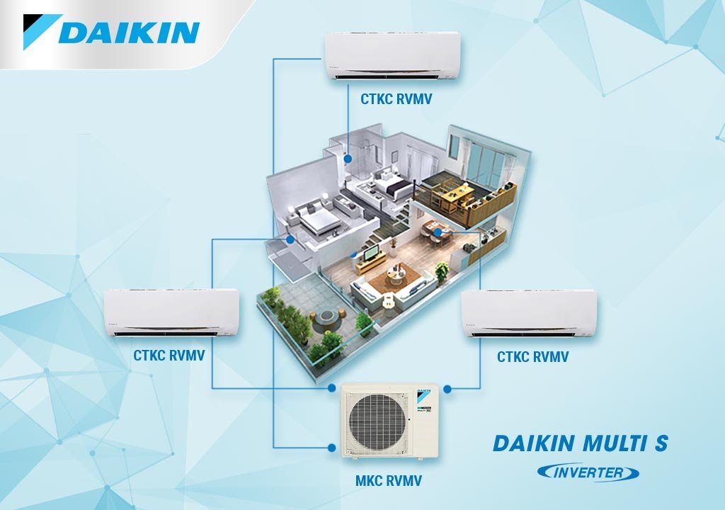 Hệ thống điều hòa không khí Multi là máy điều hòa không khí với máy nén đơn (dàn nóng đơn) có thể kết nối với nhiều dàn lạnh. Hệ thống hoàn hảo dành cho các loại nhà nhỏ với không gian lắp đặt dàn nóng hạn chế như chung cư, trả lại không gian ban công cho người sử dụng. Bằng cách giảm số lượng dàn nóng, hệ thống điều hòa không khí Multi cũng góp phần làm giảm độ ồn cùng với việc đi dây điện quá nhiều và nhiệt thải tích tụ gây ra hiện tượng quẩn giócho hệ thống.