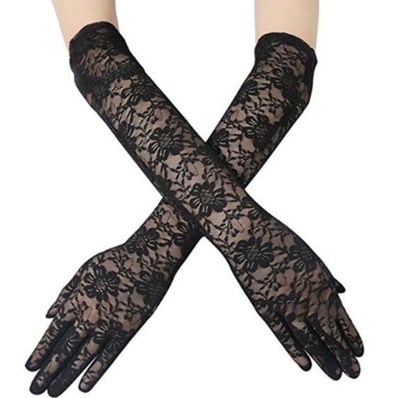 ✨Găng tay ren hoa dáng dài màu đen cho Cô dâu và Dạ hội, đi tiệc, sự kiện MS: 42322