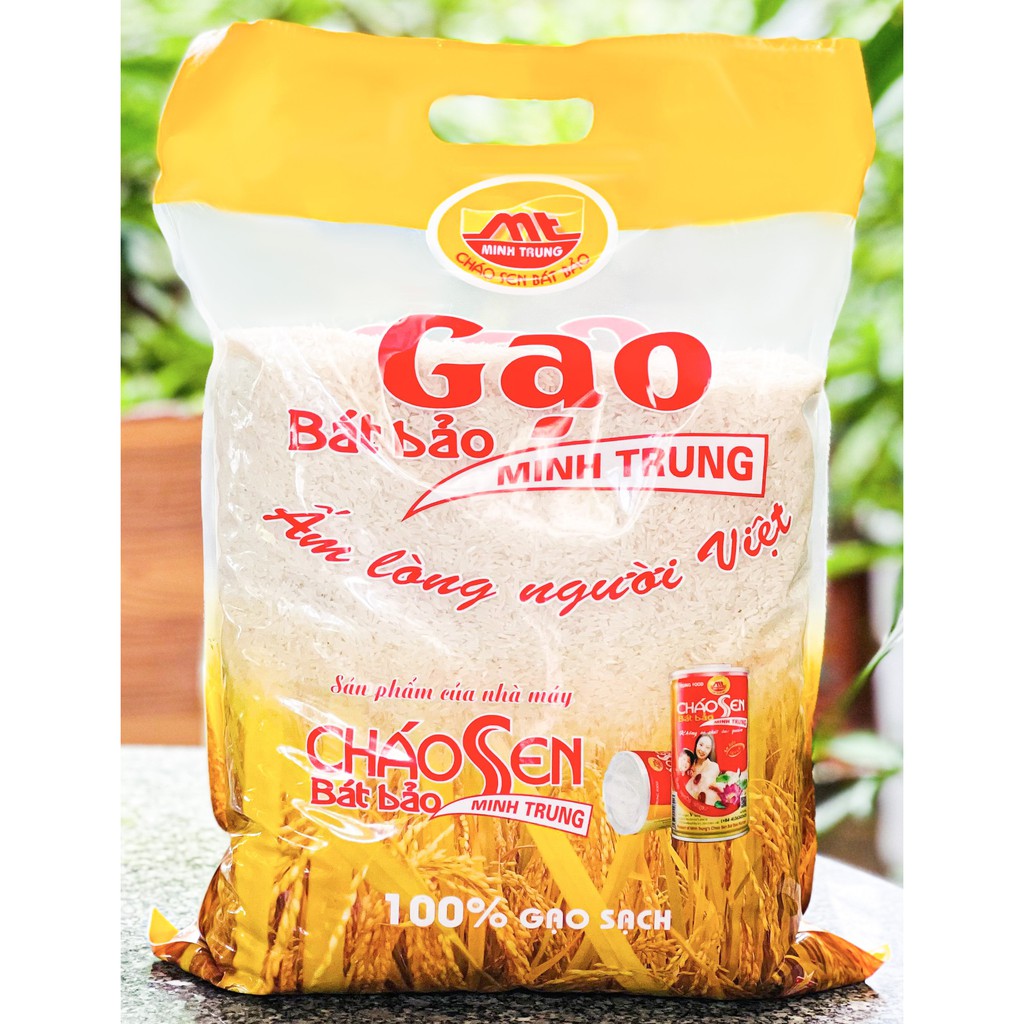 - Thành phần: Gạo Bát Bảo Minh Trung có đặc tính thơm, hạt cơm trắng, mềm dẻo, tơi xốp, có vị ngọt dịu nhẹ và đặc biệt vẫn ngon khi để nguội.