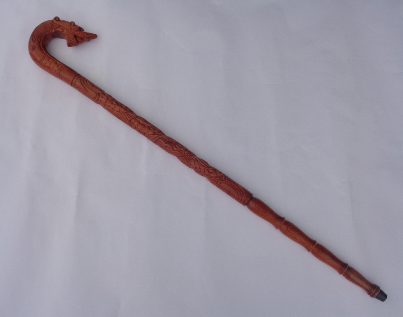 Gậy batoong gỗ hương đầu rồng ngậm ngọc - thân đốt trúc