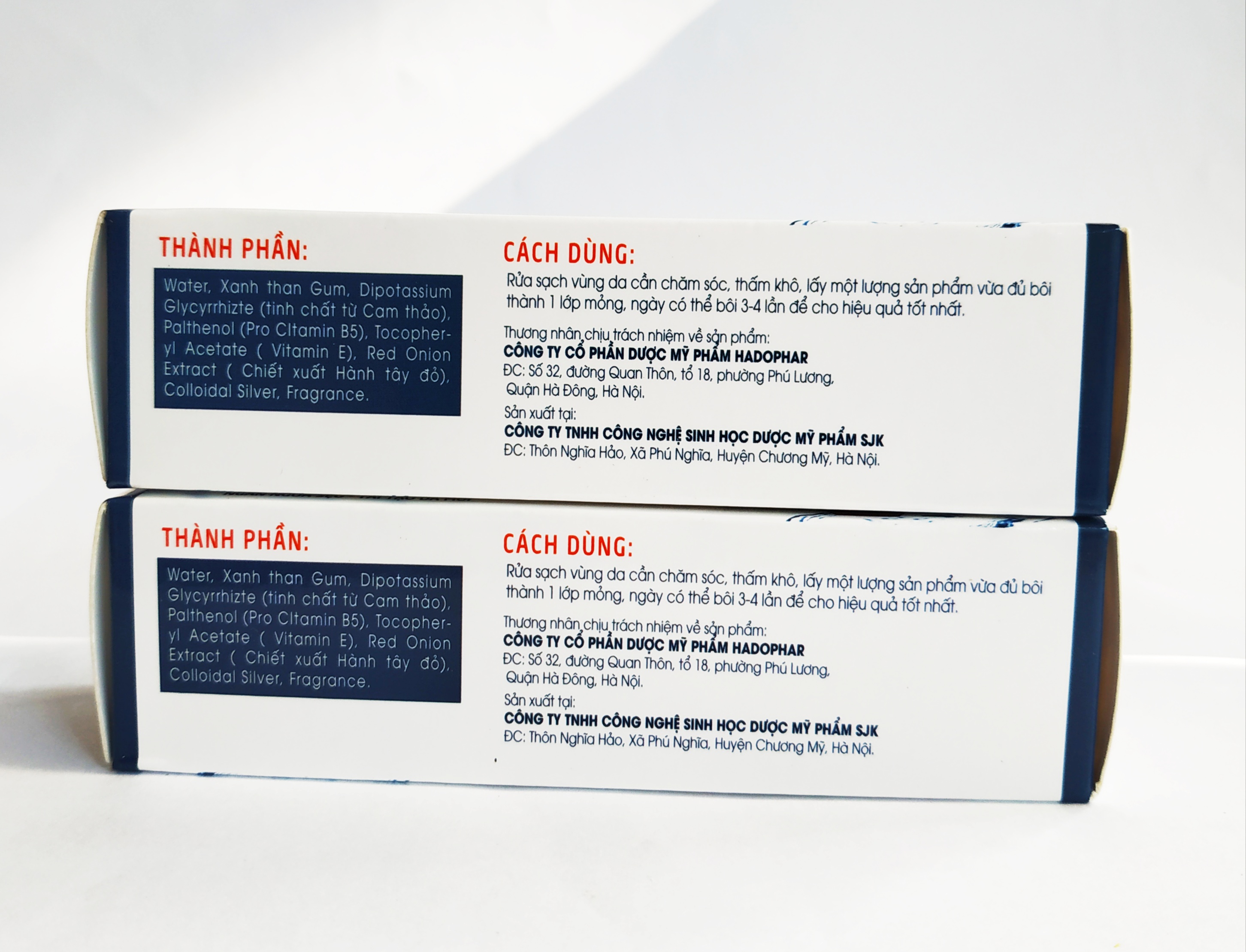 Mua tại TiktokCÔNG DỤNG: Làm sạch da, kháng khuẩn Kích thích tái tạo tế bào da mới Giúp hạn chế hình thành thâm và sẹo ĐỐI TƯỢNG SỬ DỤNG: Các bệnh ngoài da do nhiễm virus: herpes, thủy đậu (phỏng dạ, trái dạ), zona, chân tay miệng, sởi Nhiễm trùng da do vi khuẩn, viêm da, lở loét, mụn nước… Các trường hợp bỏng nhẹ, vết côn trùng căn, muỗi đốt CÁCH DÙNG: Rửa sạch vùng da cần chăm sóc, thấm khô, lấy một lượng vừa đủ bôi thành 1 lớp mỏng, ngày có thể bôi 3-4 lần để có hiệu quả tốt nhất. THÀNH PHẦN: Water,Xanh Than Gum, Dipotassium Glycyrthizte (tinh chất từ cam thảo ), Pathenol (Pro Cltamin B5), Tocopheryl Acetate (Vitamin E), Red Onion Extract (chiết xuất Hành Tây đỏ), Colloidal sillver, fragance. QUY CÁCH ĐÓNG GÓI: Hộp 1 tuýp 20g