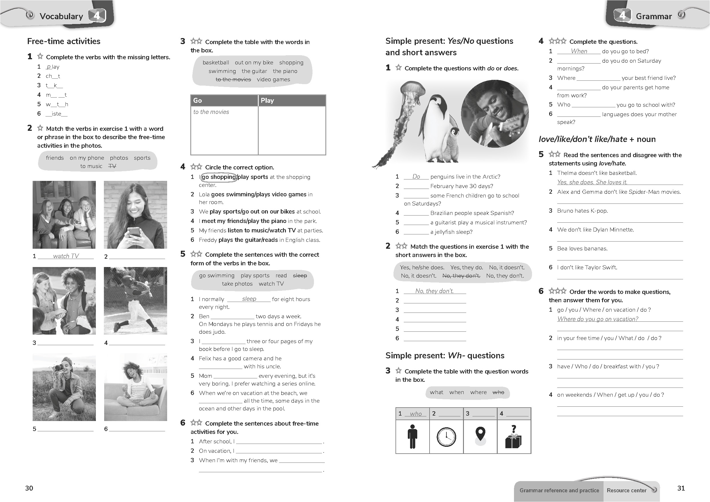 Share It! 4 Workbook The Workbook provides reinforcement of the Student Book lessons' content, and can be used in class or as homework.