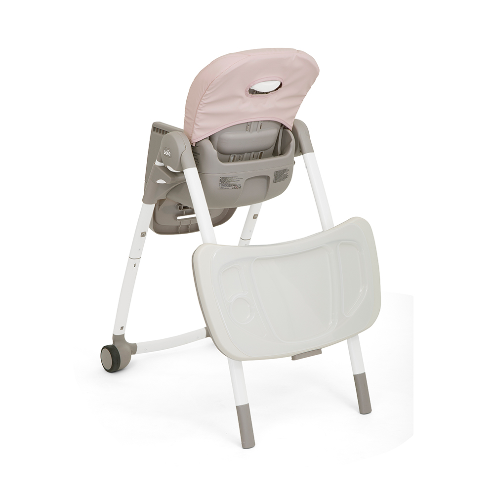 - Bàn chơi Giống như tất cả các loại ghế ăn khác của Joie, ghế ăn trẻ em Multiply 6in1 có khả năng dễ dàng gập gọn và tự đứng vững sau khi gấp lại. Ngoài ra, sau khi gập lại có thể đặt bàn ăn gọn gàng và độc đáo ở sau chân ghế. Multiply 6in1 đi kèm khay ăn tiện lợi, dễ dàng tháo rời bằng một tay, an toàn khi rửa bằng máy rửa bát. Với đai cài an toàn 5 điểm, mẹ yên tâm bé được giữ chắc chắn trong ghế nhưng không hề bị khó chịu nhờ chất liệu mềm mại. Tiện dụng và dễ dàng làm sạch Ghế ăn trẻ em Multiply 6in1 được thiết kế với phần đệm lót và đệm ghế chính dễ dàng tháo rời và giặt sạch. Sản phẩm cũng được tích hợp bánh xe ở hai chân ghế trước để dễ dàng di chuyển trong nhà. Lớp đệm lót mềm mại cho bé cảm giác thoải mái khi sử dụng. Khả năng điều chỉnh để phù hợp với cơ thể bé