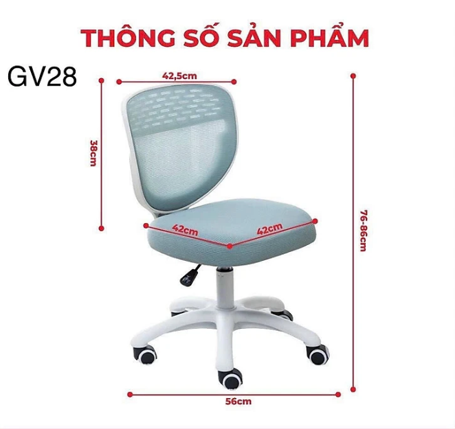 - Chiều cao mặt ghế nâng hạ linh hoạt