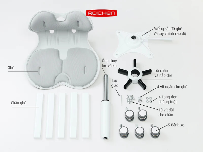 Ghế chỉnh dáng ngồi đúng có chân xoay từ thương hiệu Roichen Hàn Quốc được thiết kế giúp cho người dùng duy trì tư thế ngồi đúng một cách thoải mái, vững chãi, đưa cột sống quay trở về đường cong sinh lý. Điều này giúp ngăn ngừa các bệnh văn phòng do ngồi nhiều như đau lưng, cổ, vai, gáy...Hoặc thiếu tập trung khi học tập và làm việc do tư thế ngồi chưa đúng.