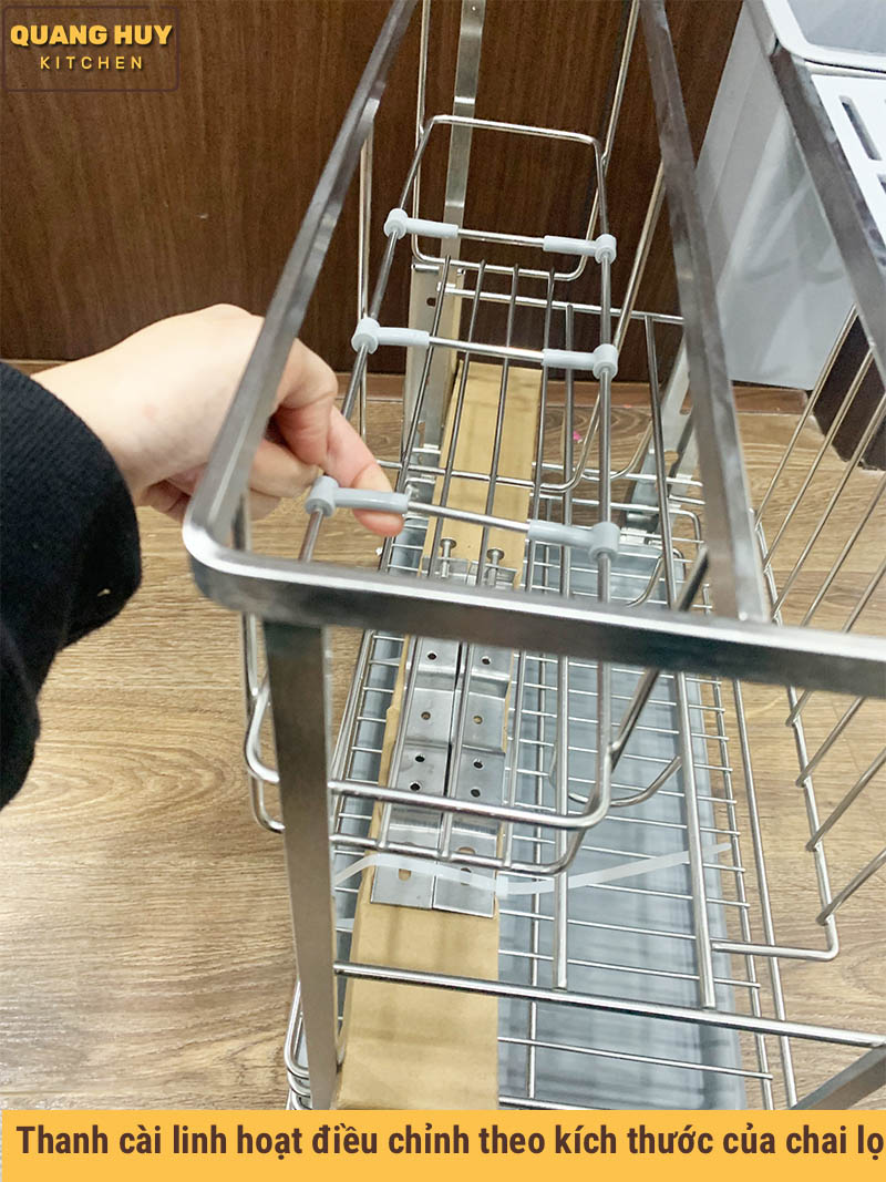 Thanh cài linh hoạt dễ dàng nhấc ra điều chỉnh cho phù hợp với kích thước chai lọ