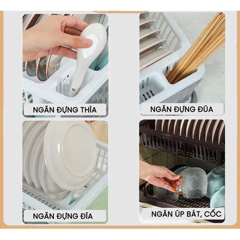 Giá úp bát đĩa 2 tầng, kệ úp chén có ống đũa đa năng kèm khay hứng , sạch sẽ tiện dụng [ Loại 1]