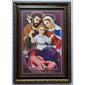 Ảnh gốc in dầu Gia đình thánh gia Chất liệu tranh in dầu trên màng lụa cao cấp được cán phủ lớp màng PE bảo vệ bề mặt tranh, dán ép trên tấm pormex dày