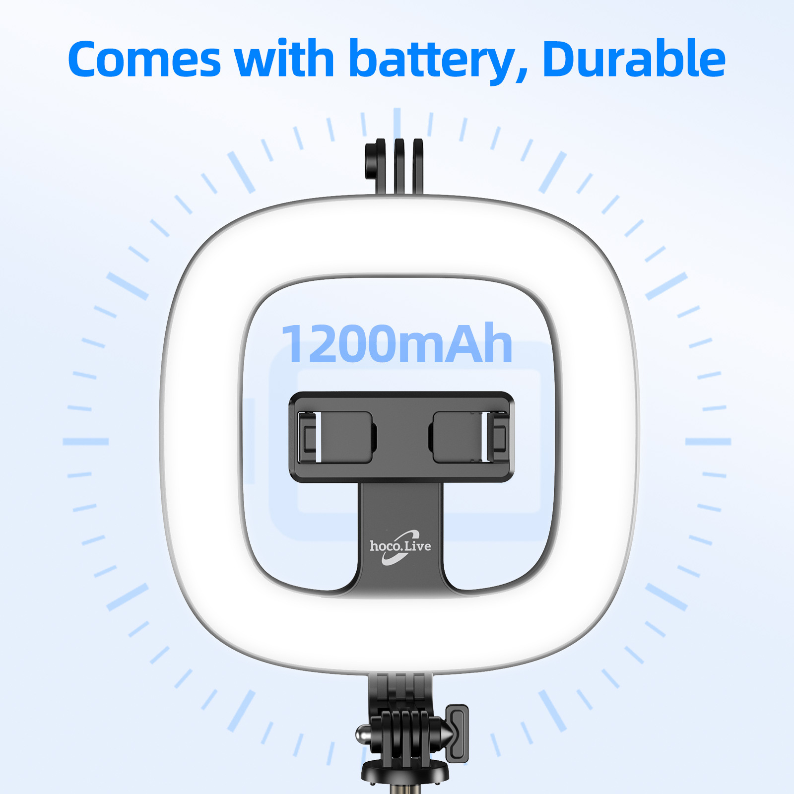 - Đèn chiếu sáng: 6 inch/đường kính ngoài 170mm; 48 hạt đèn; nhiệt độ màu: 4400K-6500K; chế độ: ánh sáng ấm/ánh sáng lạnh/ánh sáng ấm lạnh, làm mờ 9 tốc độ; pin tích hợp: 1200mAh; thời gian sử dụng: 1-4 Giờ; thời gian sạc: 200 phút