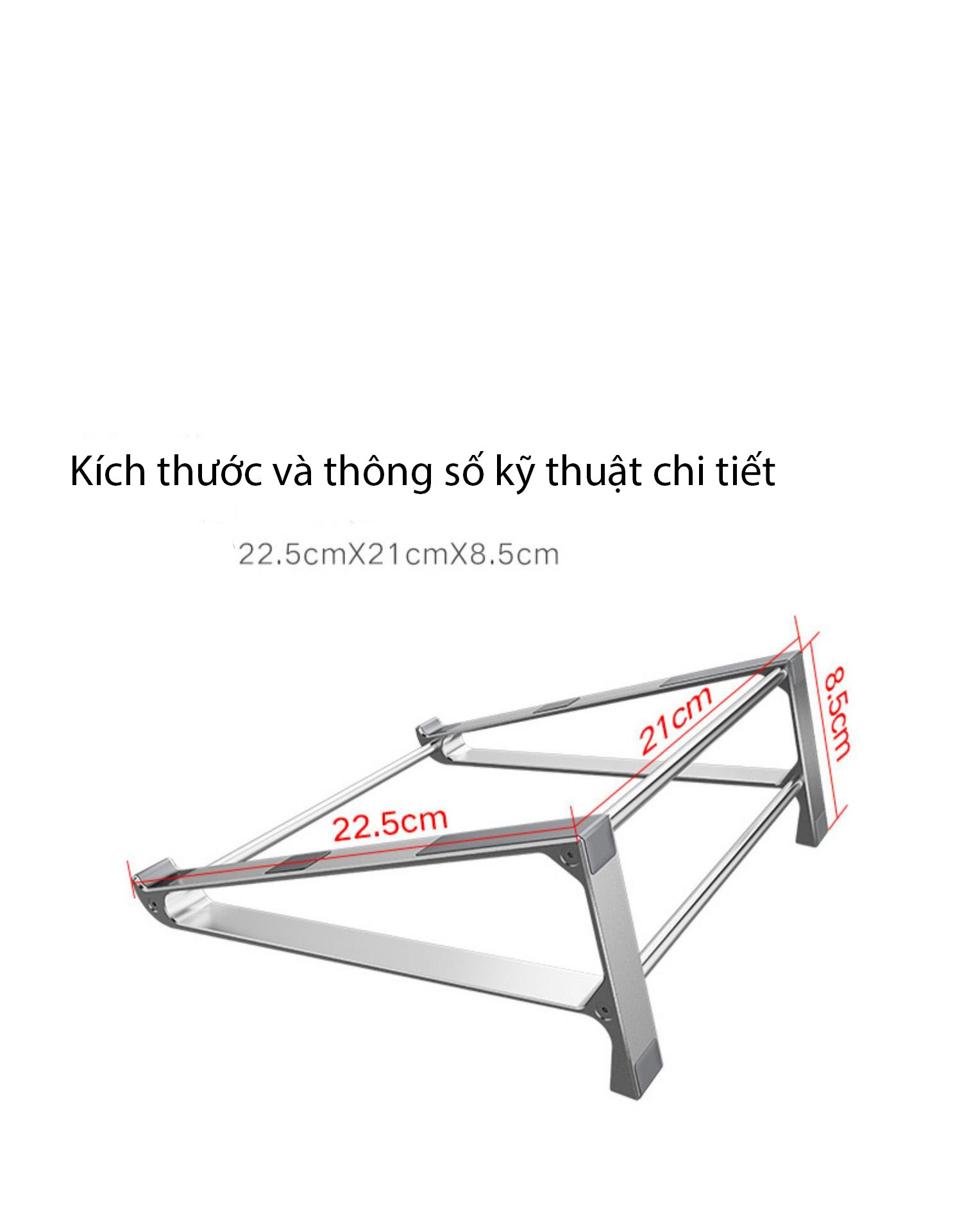 - Chất liệu hợp kim nhôm không gỉ, siêu vững, không gây kích ứng da - Thiết kế siêu mỏng, gọn, nhẹ, dán luôn ở mặt đáy của laptop, khi sử dụng chỉ cần gạt