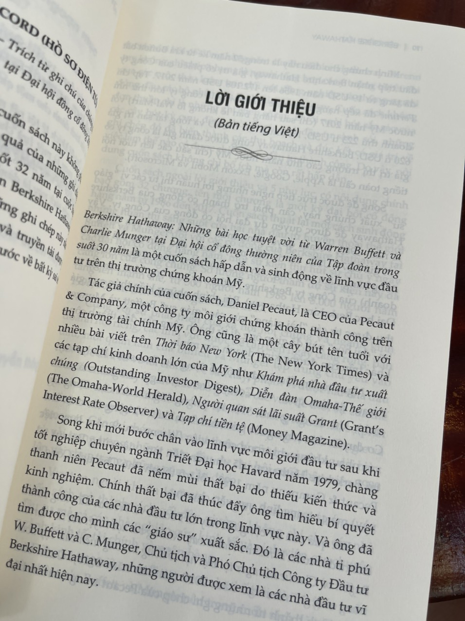 Berkshire Hathaway là một cuốn sách đáng chú ý về sự khôn ngoan vượt thời gian, hào phóng và thông minh dí dỏm của Warren Buffett (Chủ tịch kiêm CEO) cùng Charlie Munger (Phó chủ tịch) thông qua những chiến lược đầu tư được truyền lại cho các cổ đông trong suốt 30 năm tại các cuộc họp thường niên.